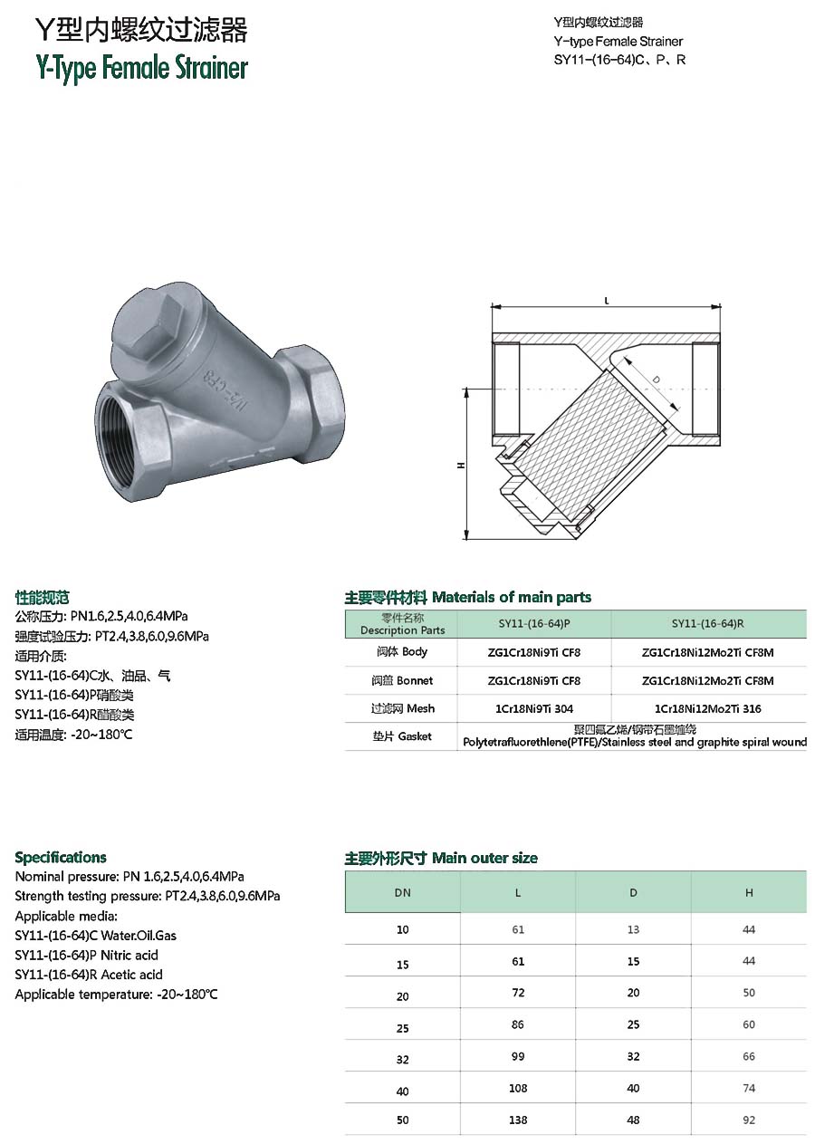 Y型内螺纹过滤器