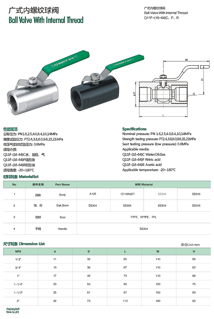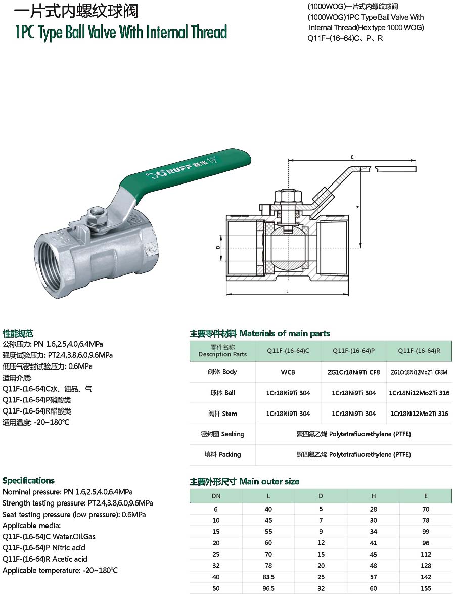 | 一片式内螺纹2000PSI球阀 |