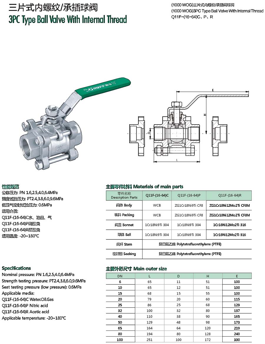 | 三片式内螺纹承插球阀(高平台) |