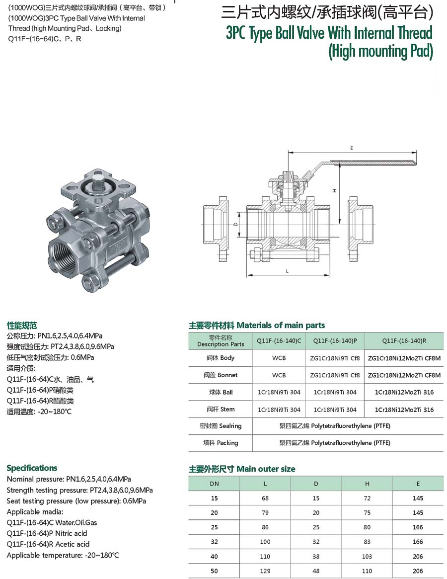 | 三片式法兰球阀(高平台) |
