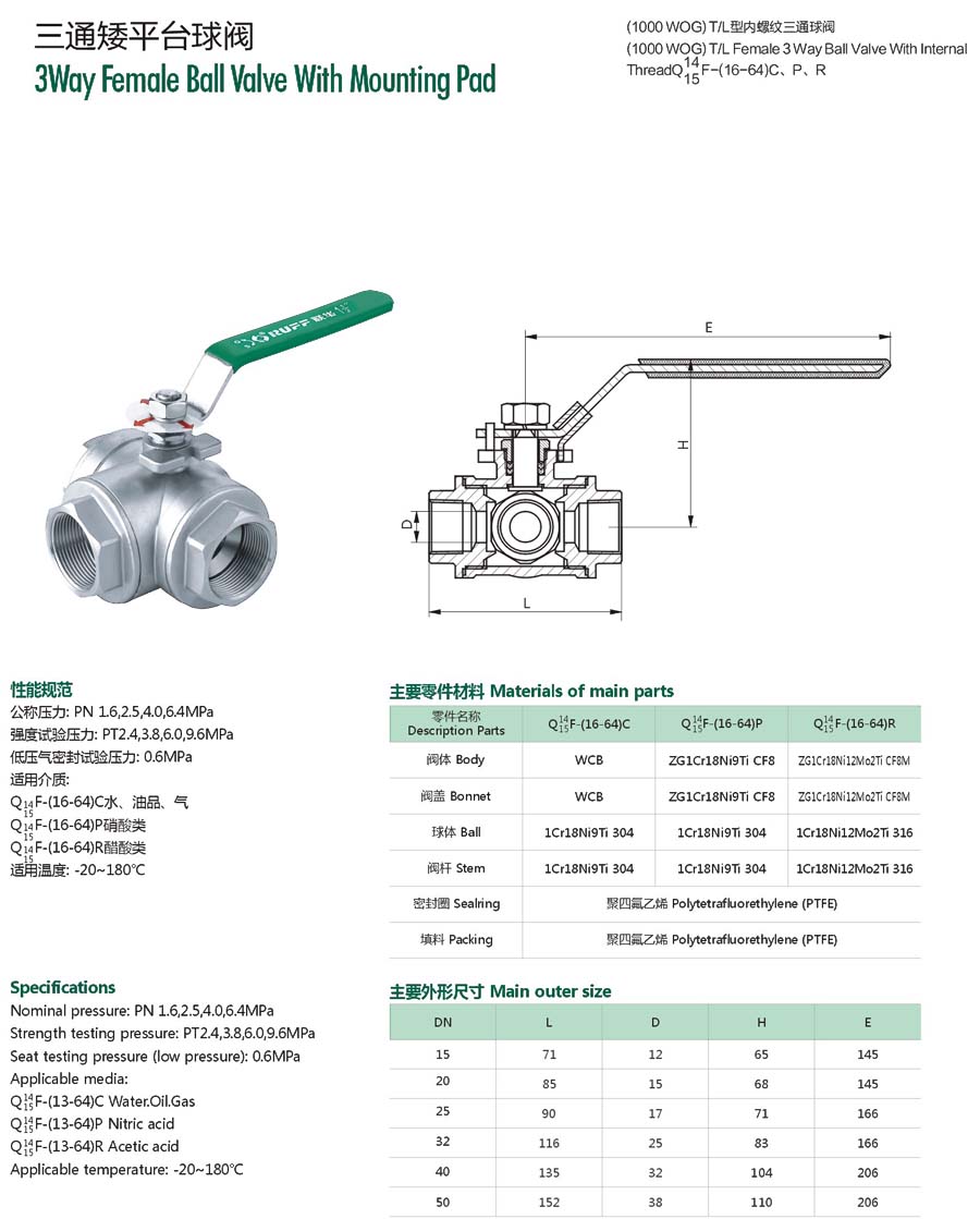 | 三片式内螺纹2000PSI球阀(高平台. |