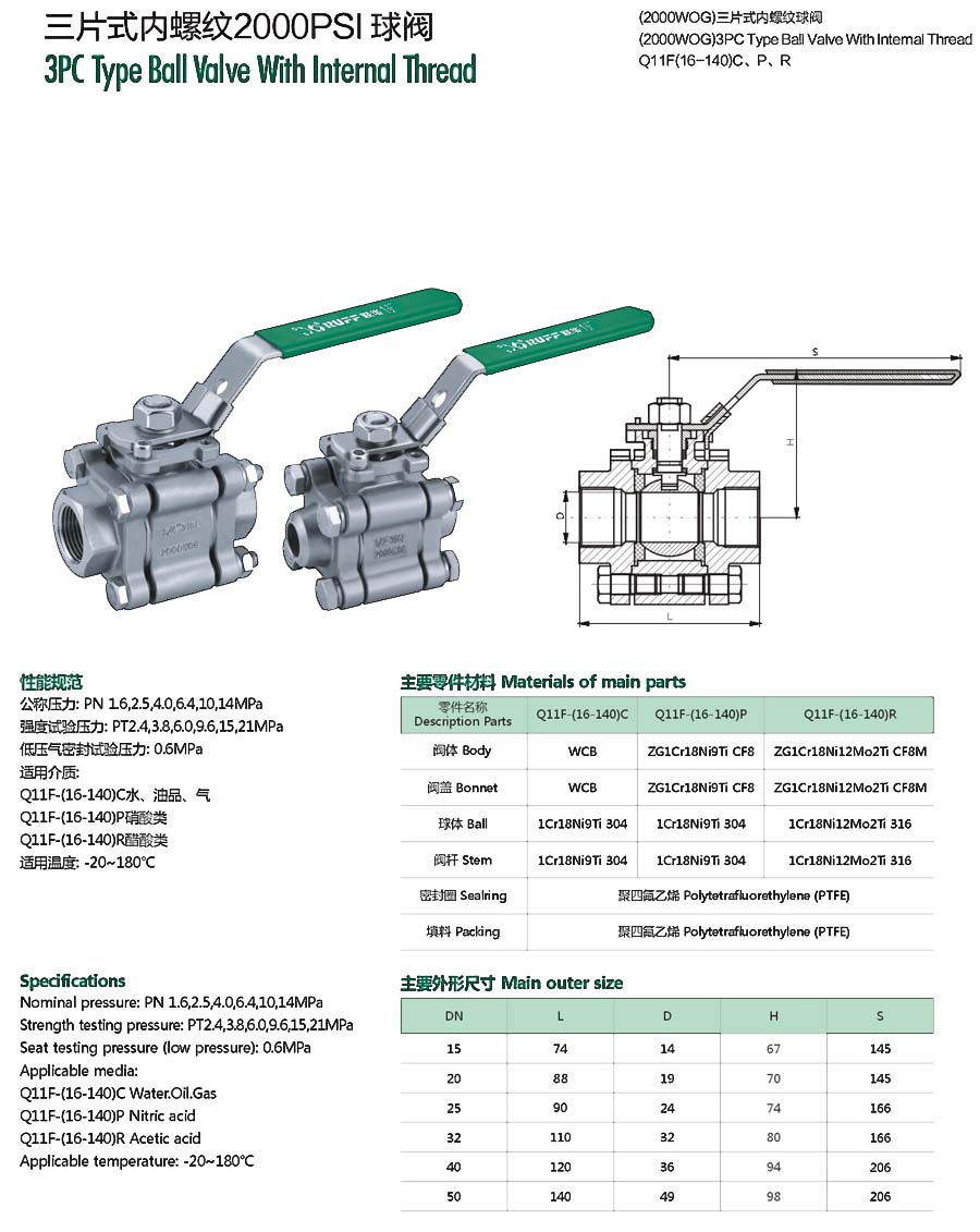 | 三片式内螺纹2000PSI球阀 |