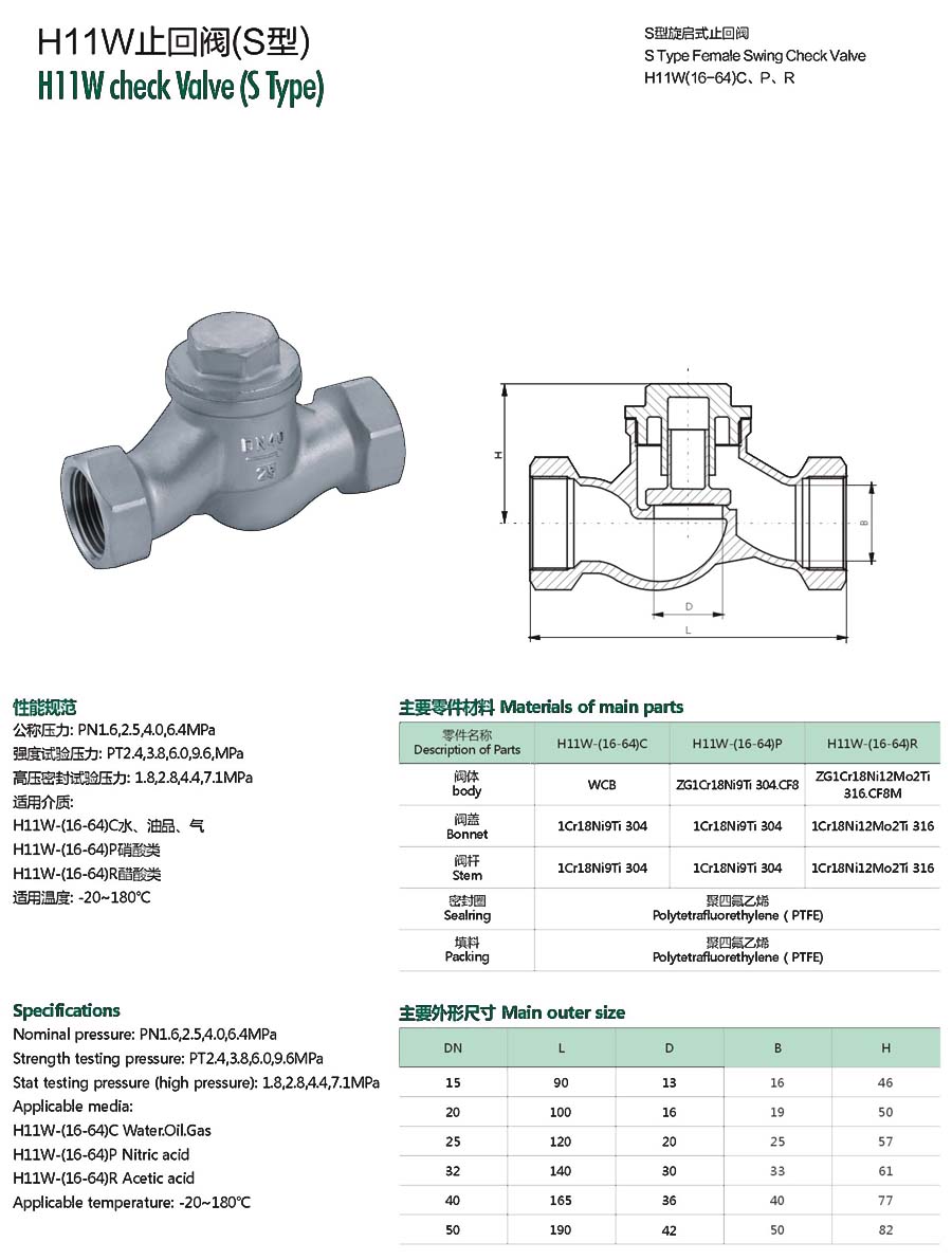 H11W止回阀(S型)