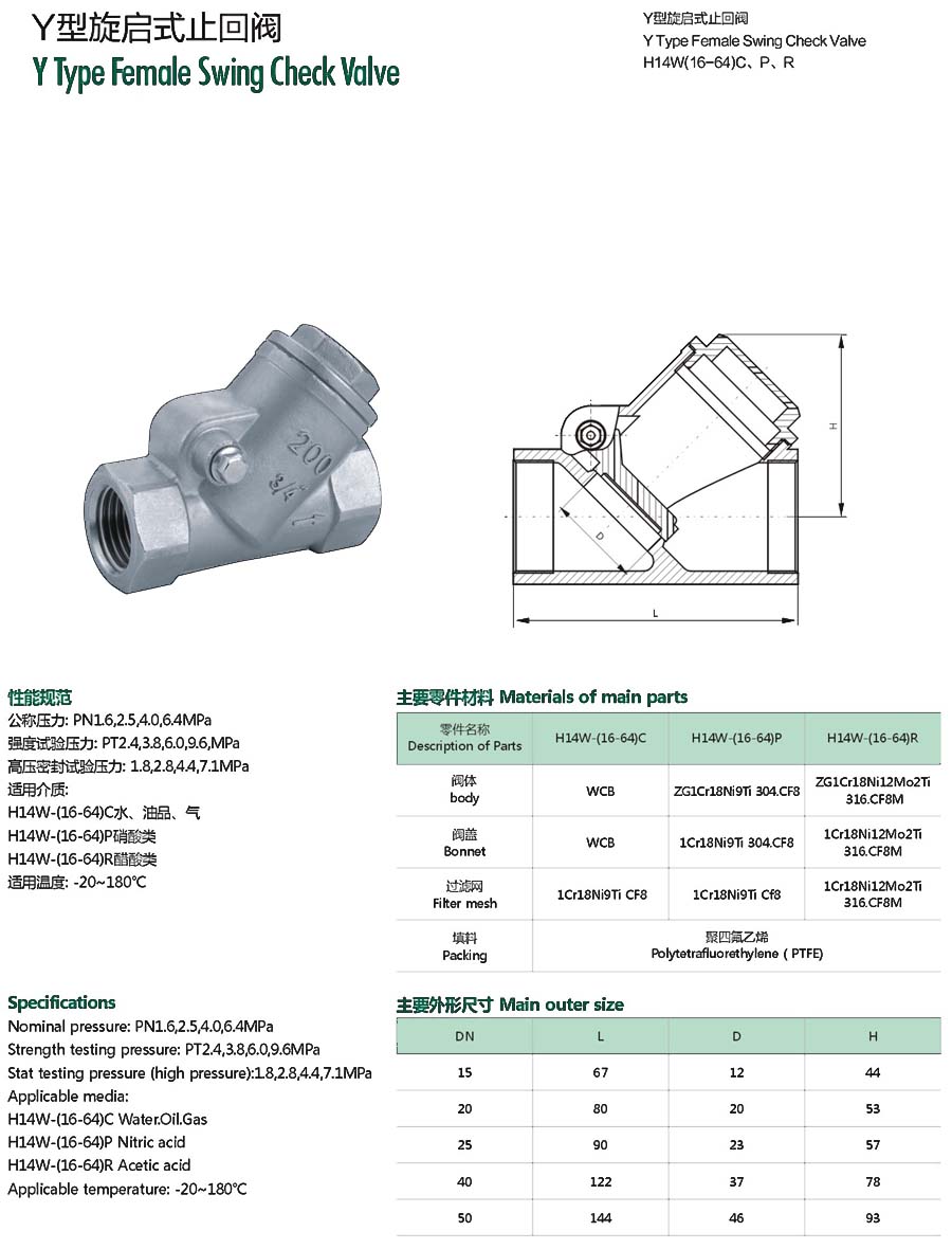 Y型旋启式止回阀