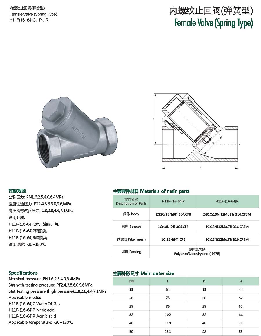 内螺纹止回阀(弹簧型)